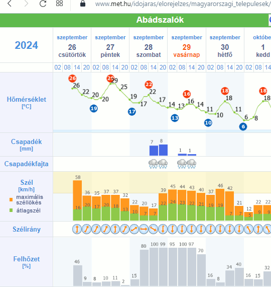 (Vedd azonban figyelembe, hogy vasárnapra már északi szélirány