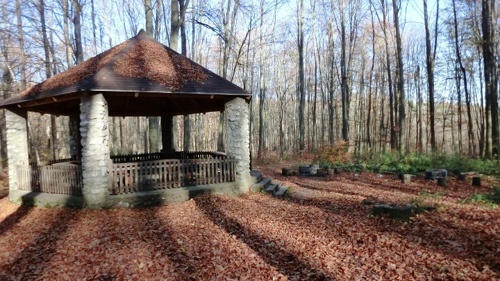 de vannak fából készült ülőhelyek. Továbbhaladva