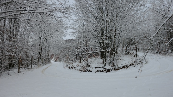 Csapadékos idő után az út a ráfagyott nedvességtől néhol csúszós lehet.