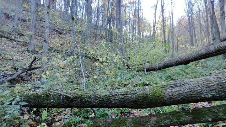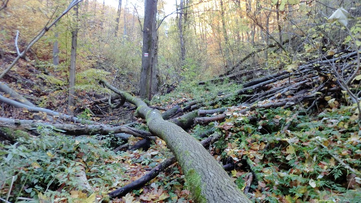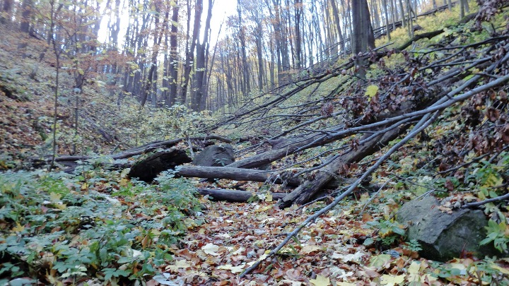 és a Vesszös-völgyben (lefelé) sok kidőlt fával is meg kell küzdenünk.