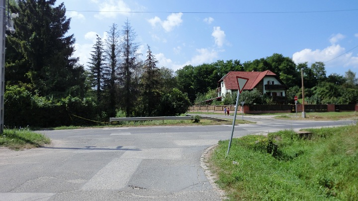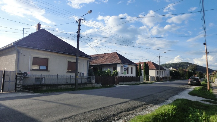 a Múcsonyra vezető út egy párszáz méteres szakaszán, útépítés miatt.